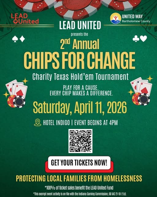 100% of the proceeds from your ticket purchase go directly to the LEAD United Fund, a vital part of United Way of Bartholomew County’s work to make homelessness rare, brief, and nonrecurring in our community.